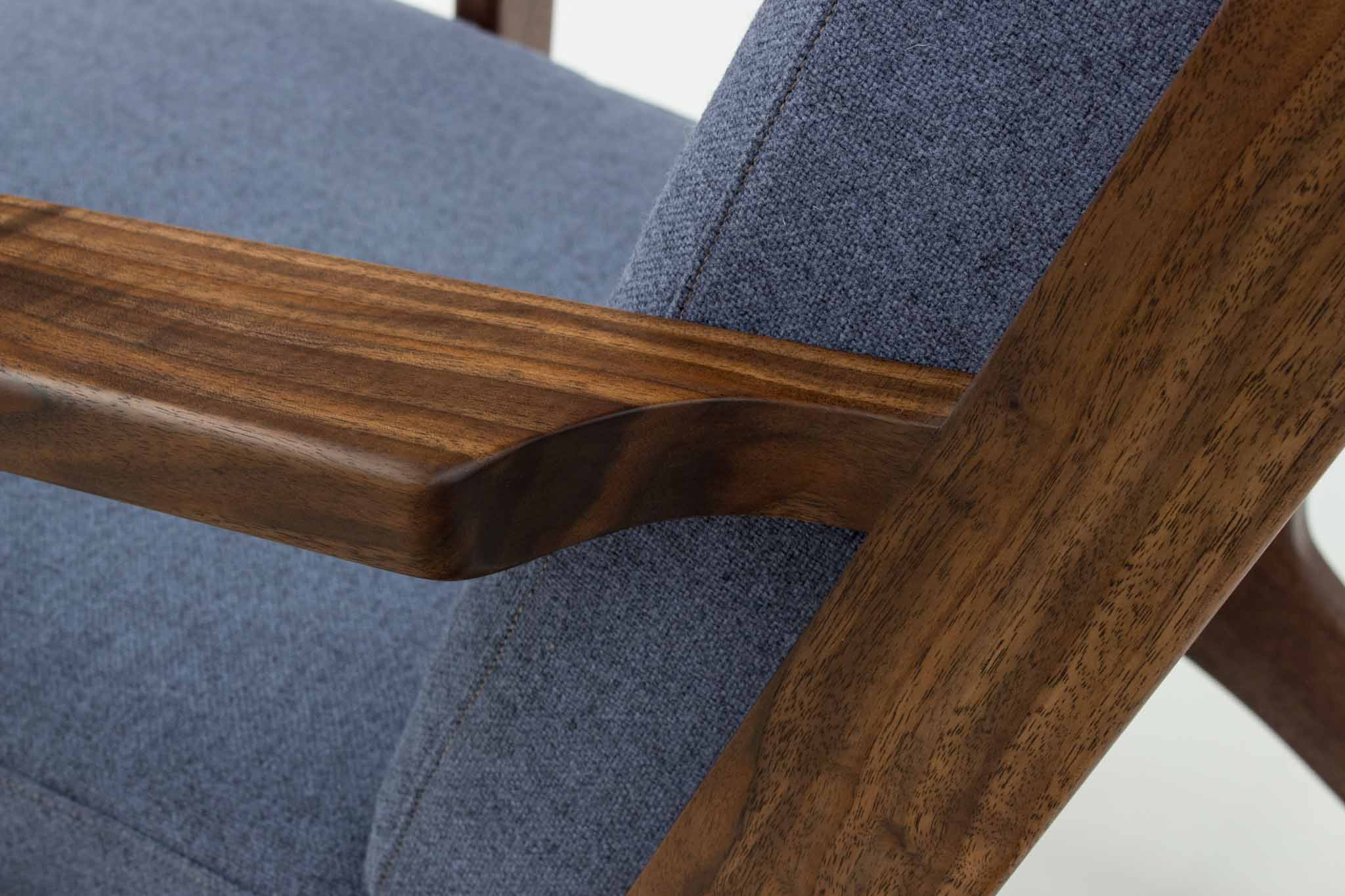 Blue Walnut Lounge ChairArtist: Gabe NasrFurniture Type: Chair Project Details: Solid Wood / UpholsteryWood Type: WalnutDimensions: 28" x 32" x 30" Year: 2018See Recent Student ProjectsSee More Chair Projects