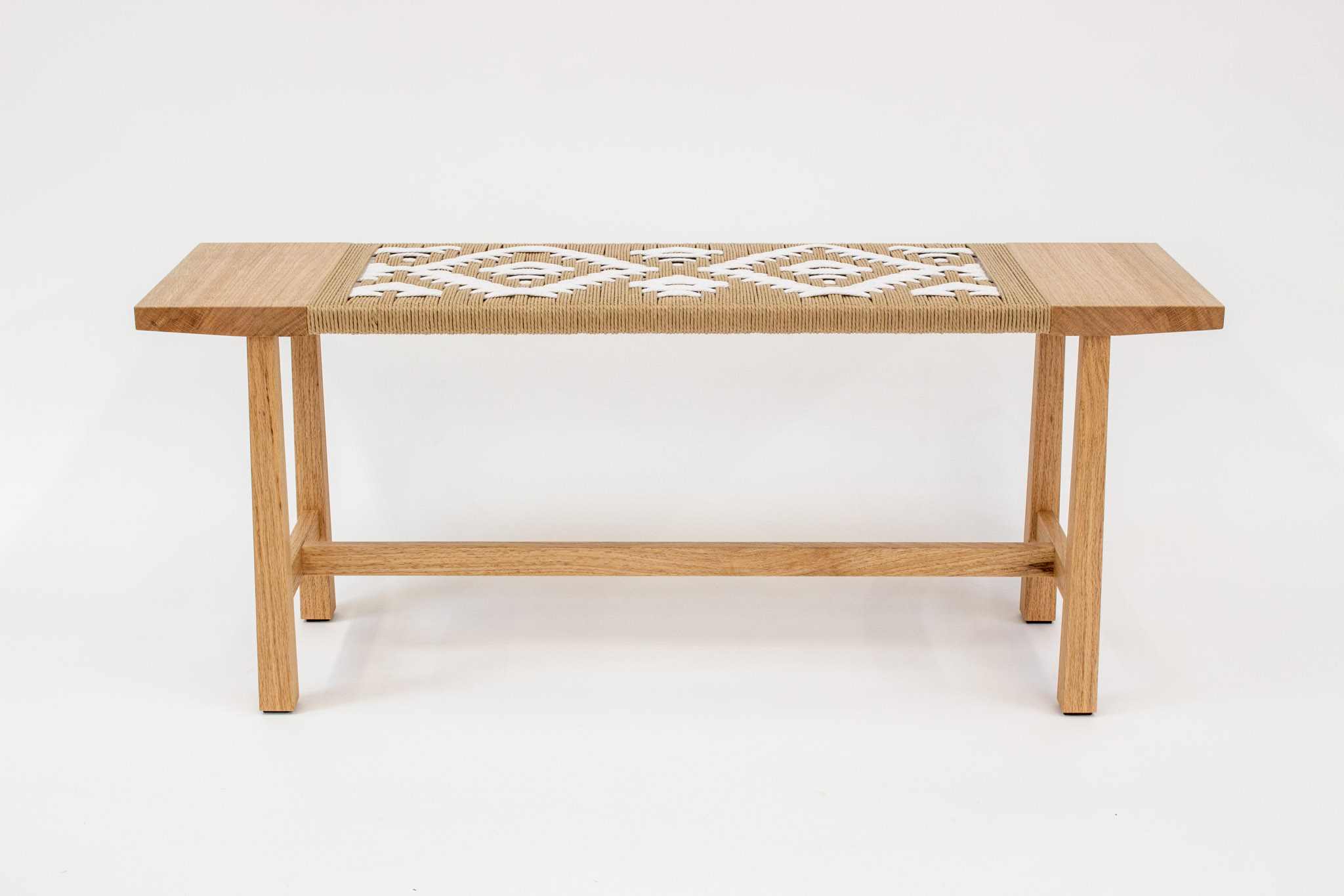 Diamond Day BenchArtist: Nikki MuscatFurniture Type: Bench Project Details: Cord and Rush / Solid WoodWood Type: Black OakDimensions: 18" x 45" x 12" Year: 2022See Recent Student ProjectsSee More Bench Projects