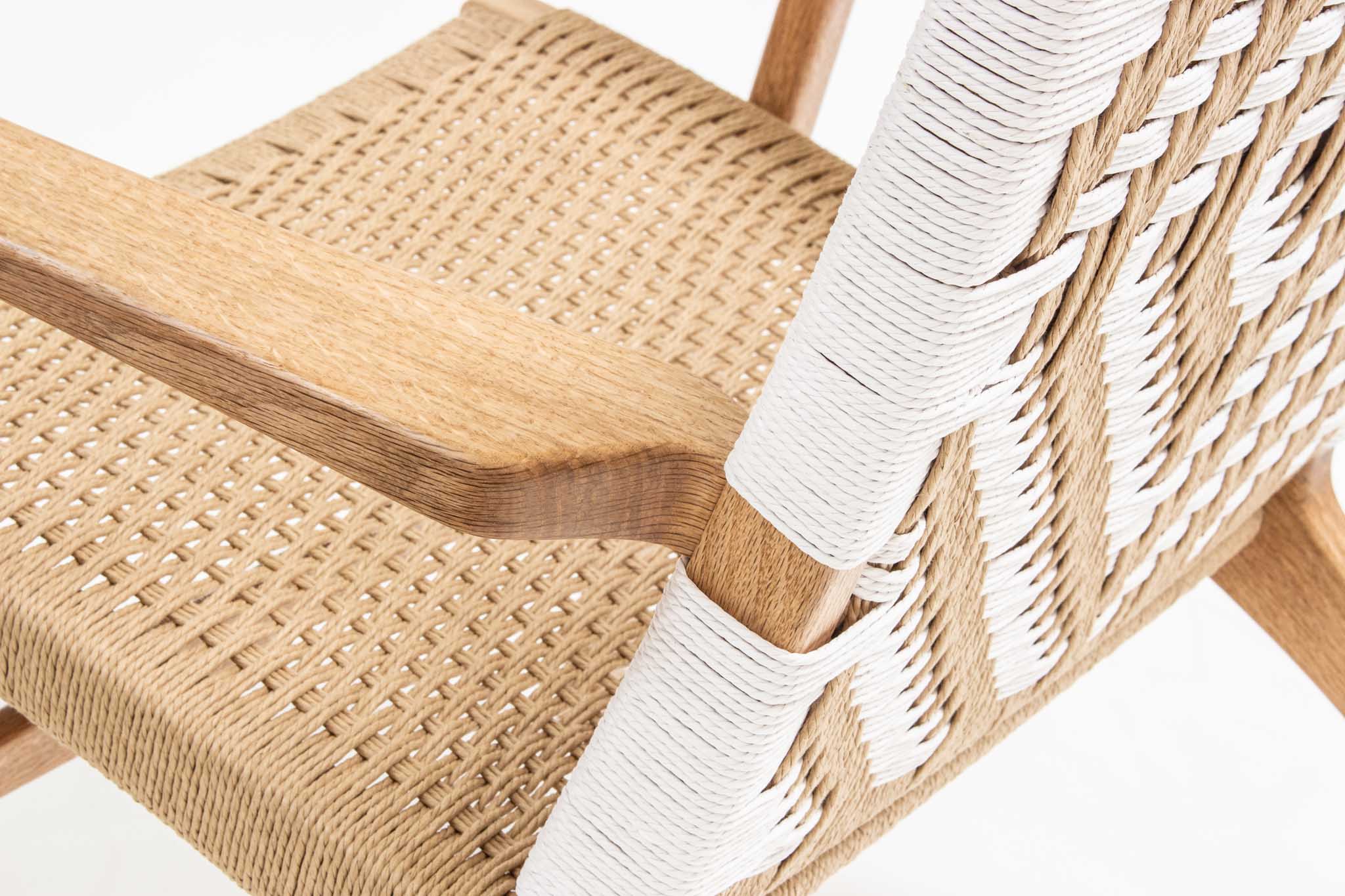 Diamond Easy Chair. Chair design by Hans Wegner. From Carl Hansen &Son.Artist: Nikki MuscatFurniture Type: Chair Project Details: Cord and Rush / Solid WoodWood Type: Black OakDimensions: 31" x 27" x 28 1/4" Year: 2022See Recent Student ProjectsSee More Chair Projects