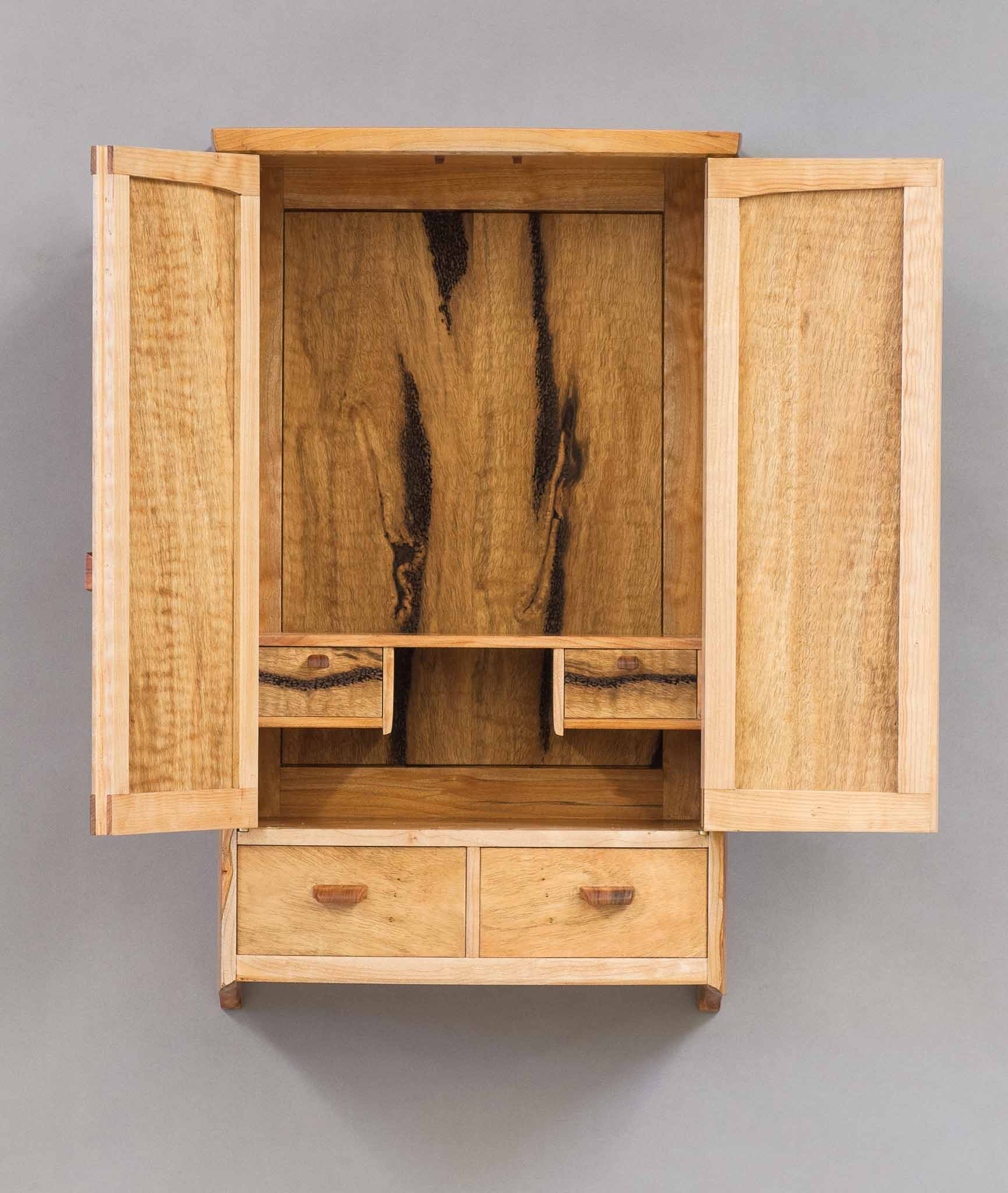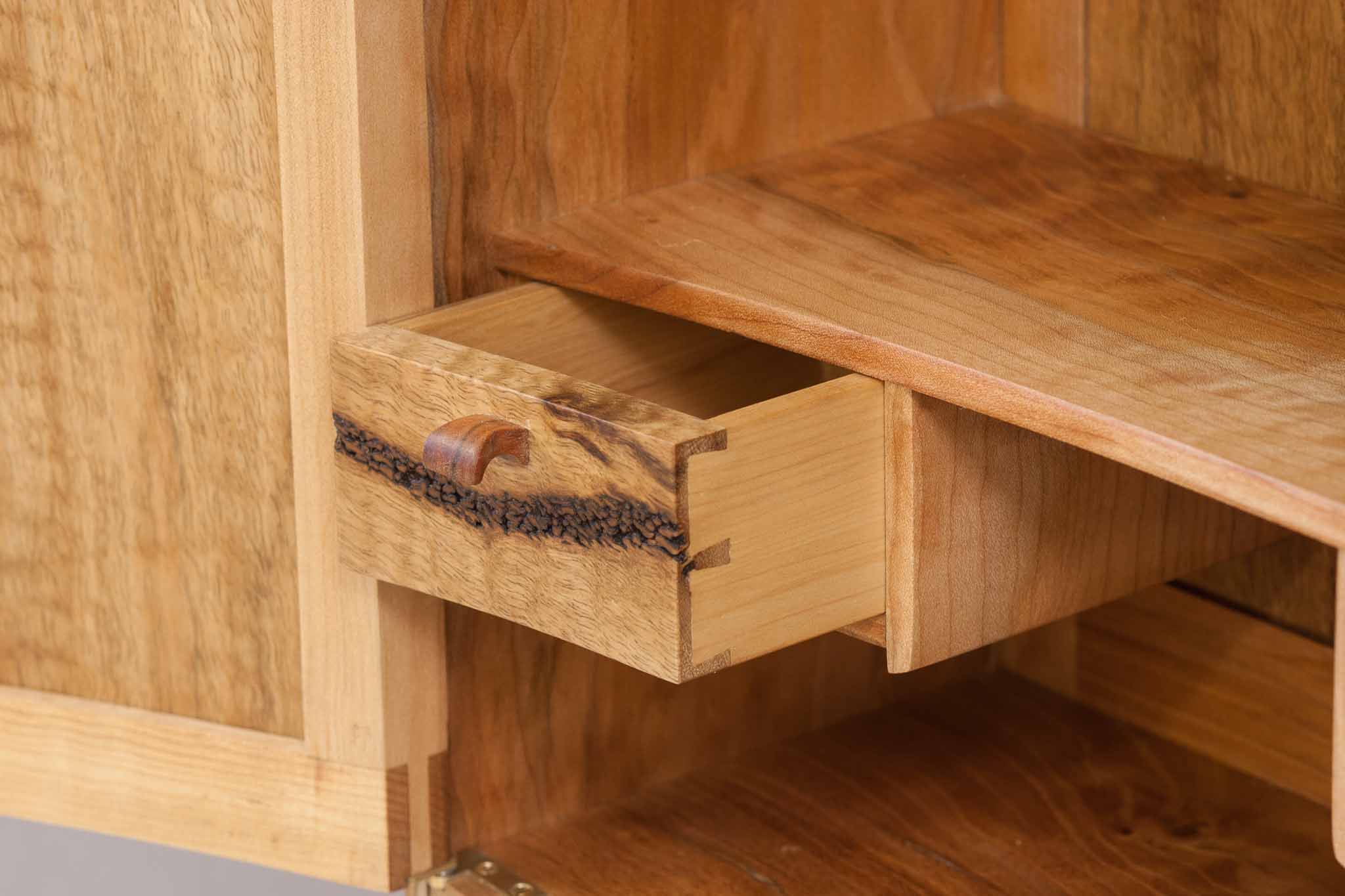Chase hauled a billet of marri around during a backpacking trip in New Zealand. That billet turned into this cabinet.